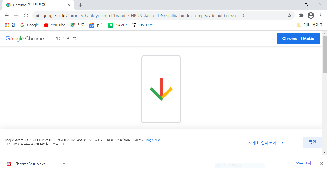 3. μΌμͺ½ μλμ λ€μ΄λ‘λκ° λ€ λλλ©΄ ChromeSetup.exeλ₯Ό ν΄λ¦νμ¬ μ€νν©λλ€.